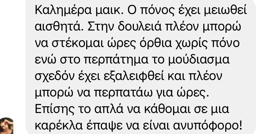 Εξατομικευμένη συνεδρία για αντιμετώπιση πόνου, πρόληψη και επιστροφή στη δραστηριότητα με αυτοπεποίθηση και λειτουργικότητα.